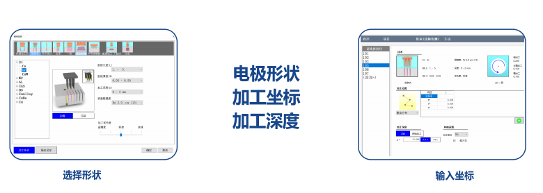 从菜单中选择加工形状,通过输入工件材质等,自动选择合理的加工条件。